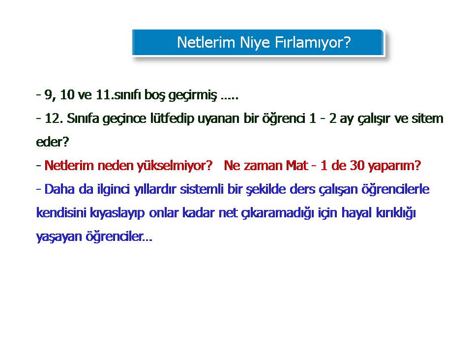 11.Sınıflar; YGS İçin Netlerim Niye Fırlamıyor?
