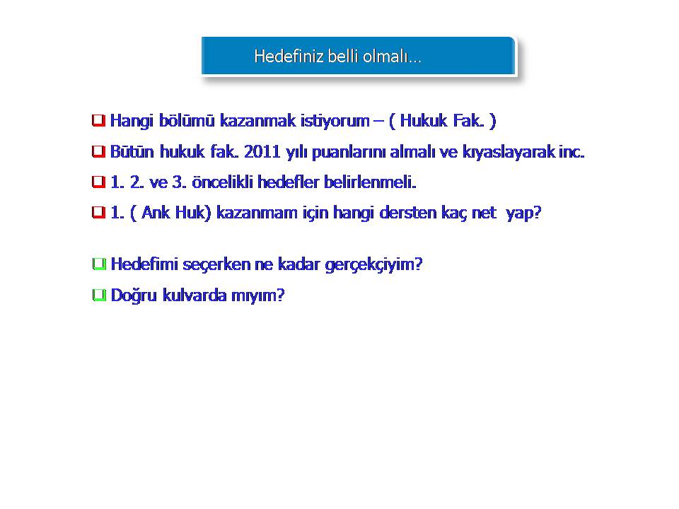 "11.Sınıflar İçin YGS, LYS Çalışma Stratejileri Sunumu" Sunumunun "11.Sınıflar; YGS , LYS İçin Hedefiniz Belli Olmalı" konulu içeriğini görüntülemektesiniz.