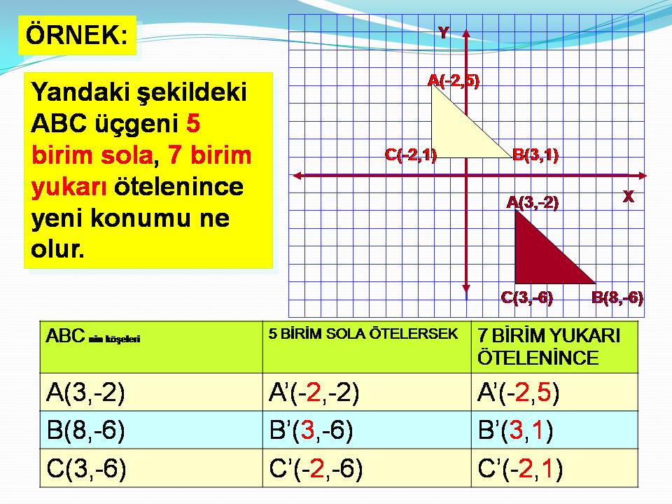 7.Sınıf Koordinat Sisteminde Öteleme İle İlgili Çözümlü Örnek Soru