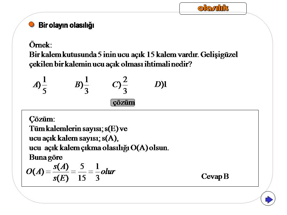 7.Sınıf Matematik Bir Olayın Olasılığı İle İlgili Örnek Test Sorusu (Çözümlü)
