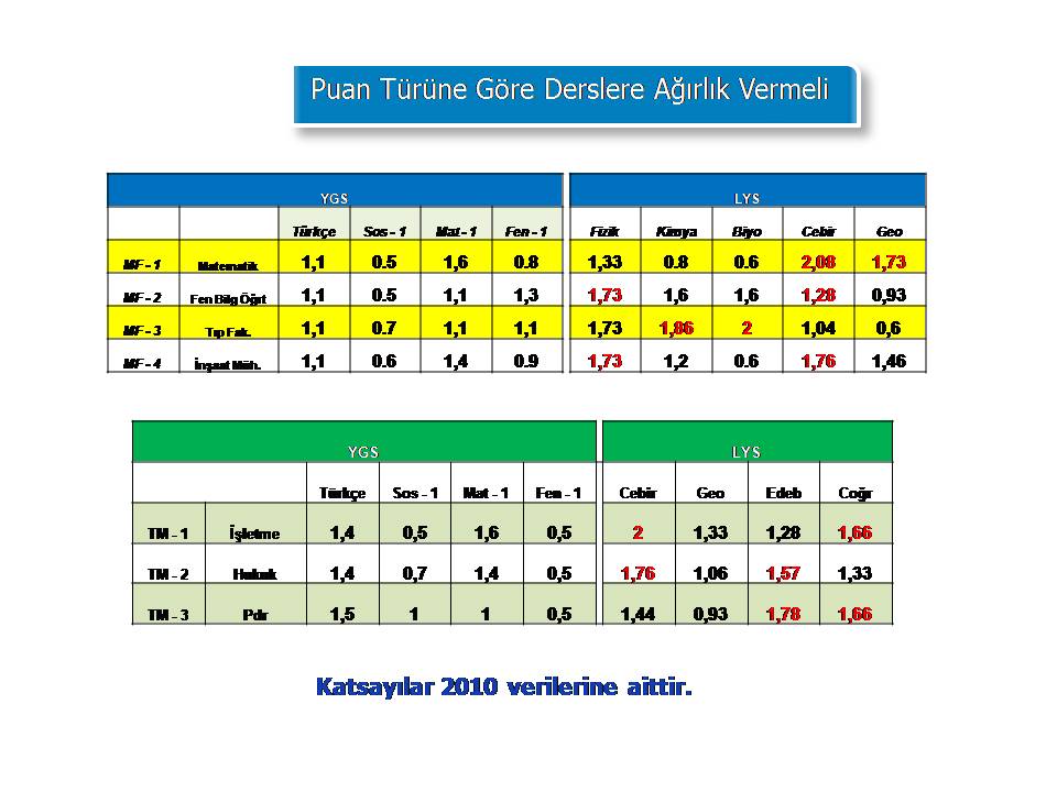 Puan Türlerine Göre Ağırlık Verilmesi Gereken Dersler
