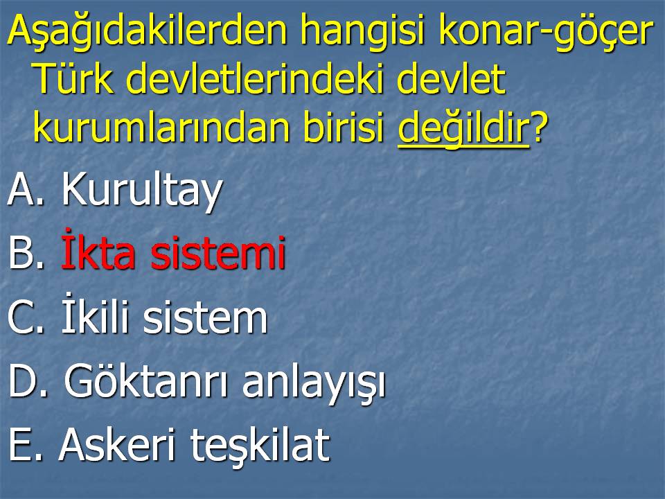 2013 - 2014 Eğitim Öğretim Yılı "Türk Tarihi" sunumunun Yerleşik Olmayan Türk Devletleri İle İlgili Test Sorusu ve Cevabı adlı slayt 2012-11-28 tarihinde sitemize eklendi ve "Yerleşik Olmayan Türk Devletleri İle İlgili Test Sorusu ve Cevabı" slaytı 1932 defa incelendi. "Türk Tarihi" sunumunda toplam 63 slayt bulunmaktadır.