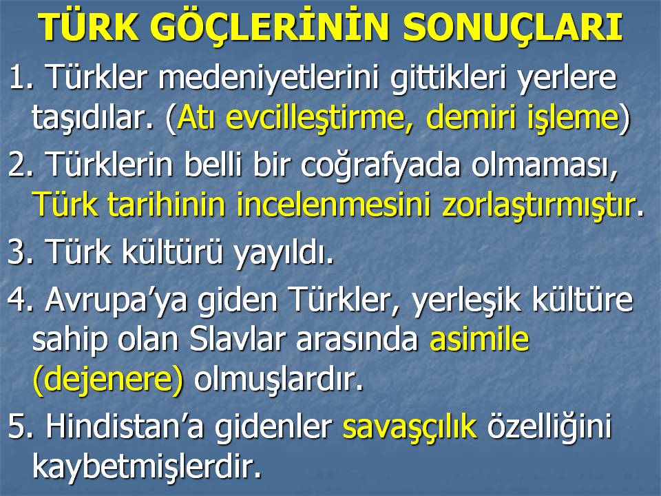 Türklerin Orta Asyadan Göç Etmelerinin Sonuçları